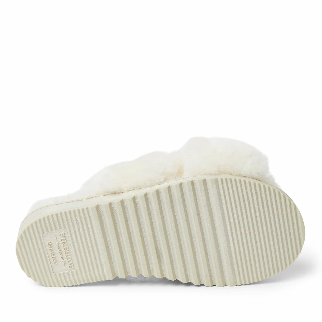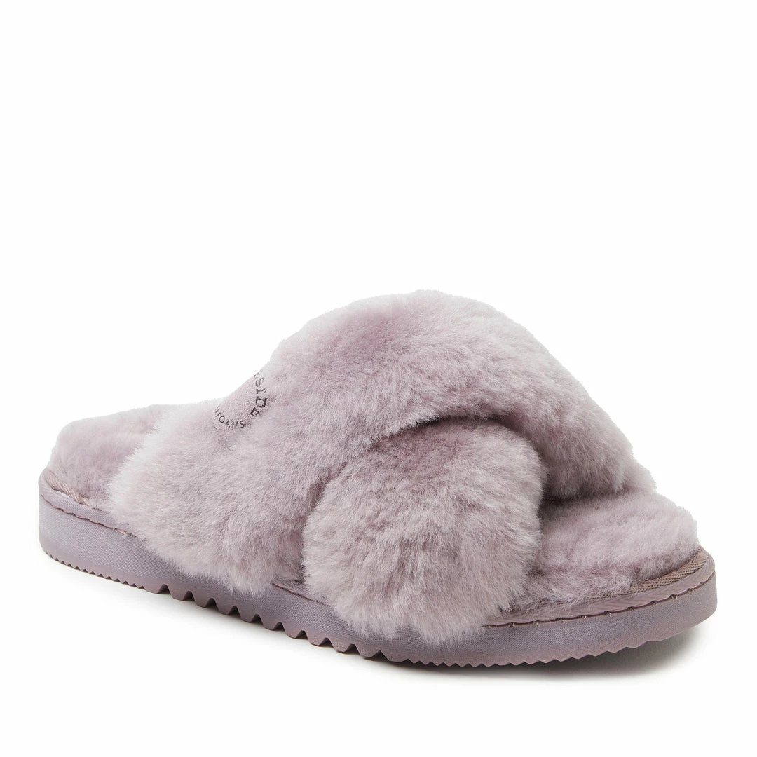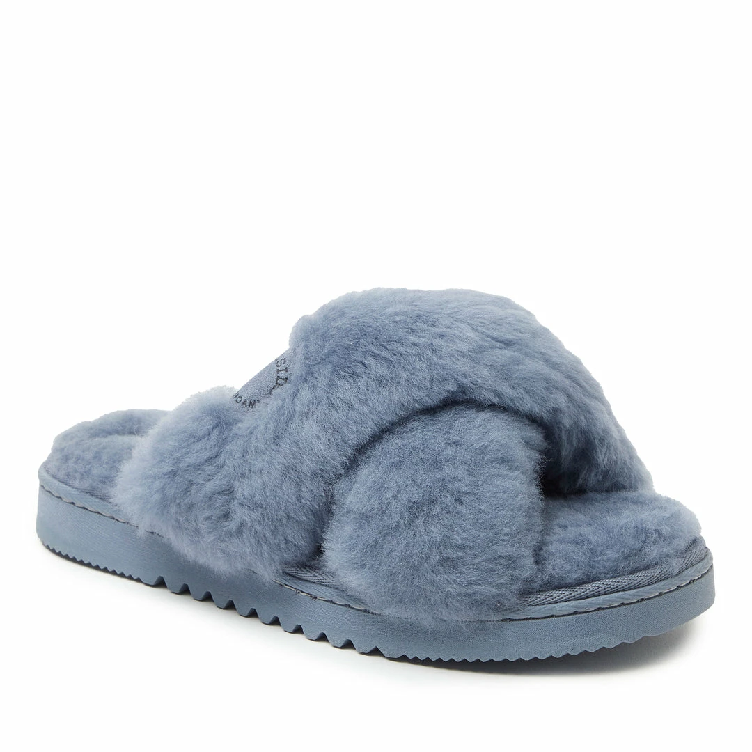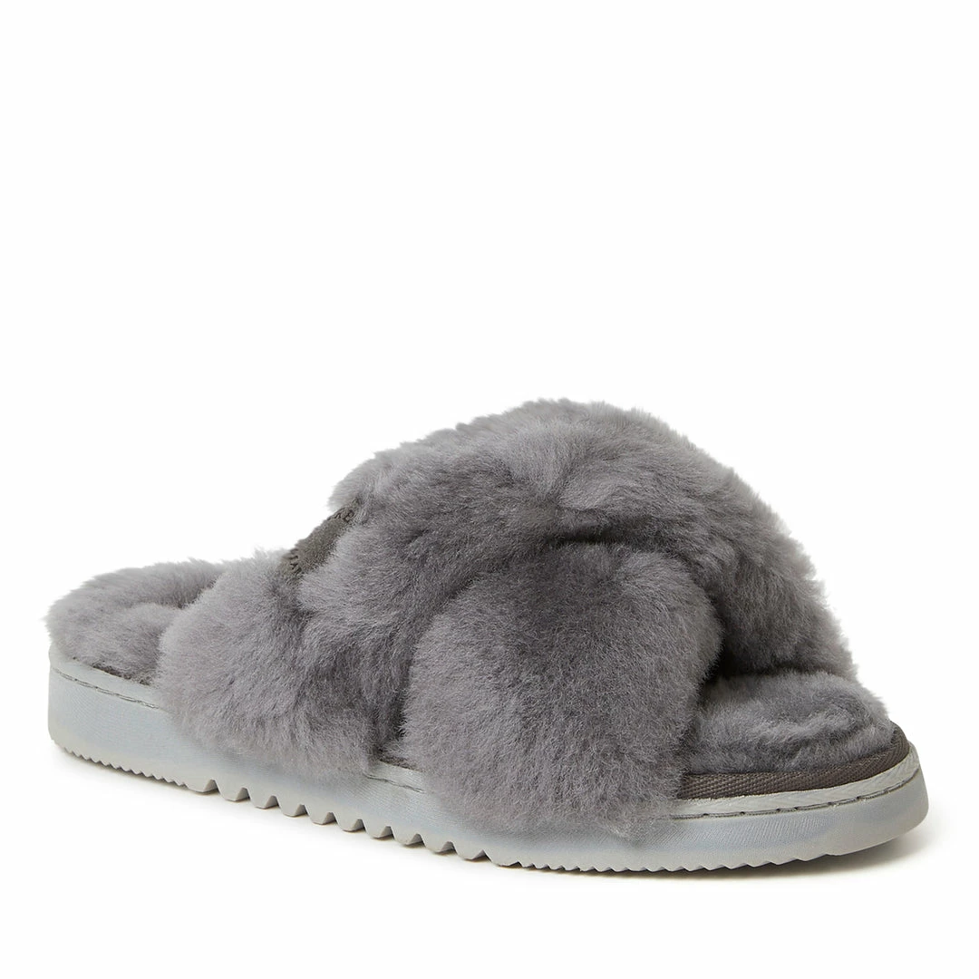 Wholesale π Dearfoams π© Womens Fireside By Dearfoams π© Womens New Castle Genuine Shearling Cross Band Slide π