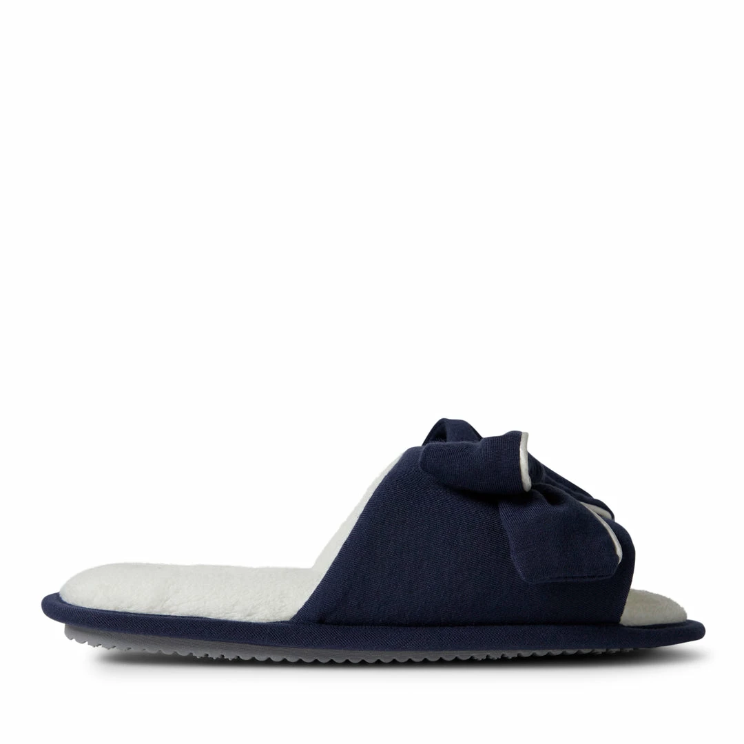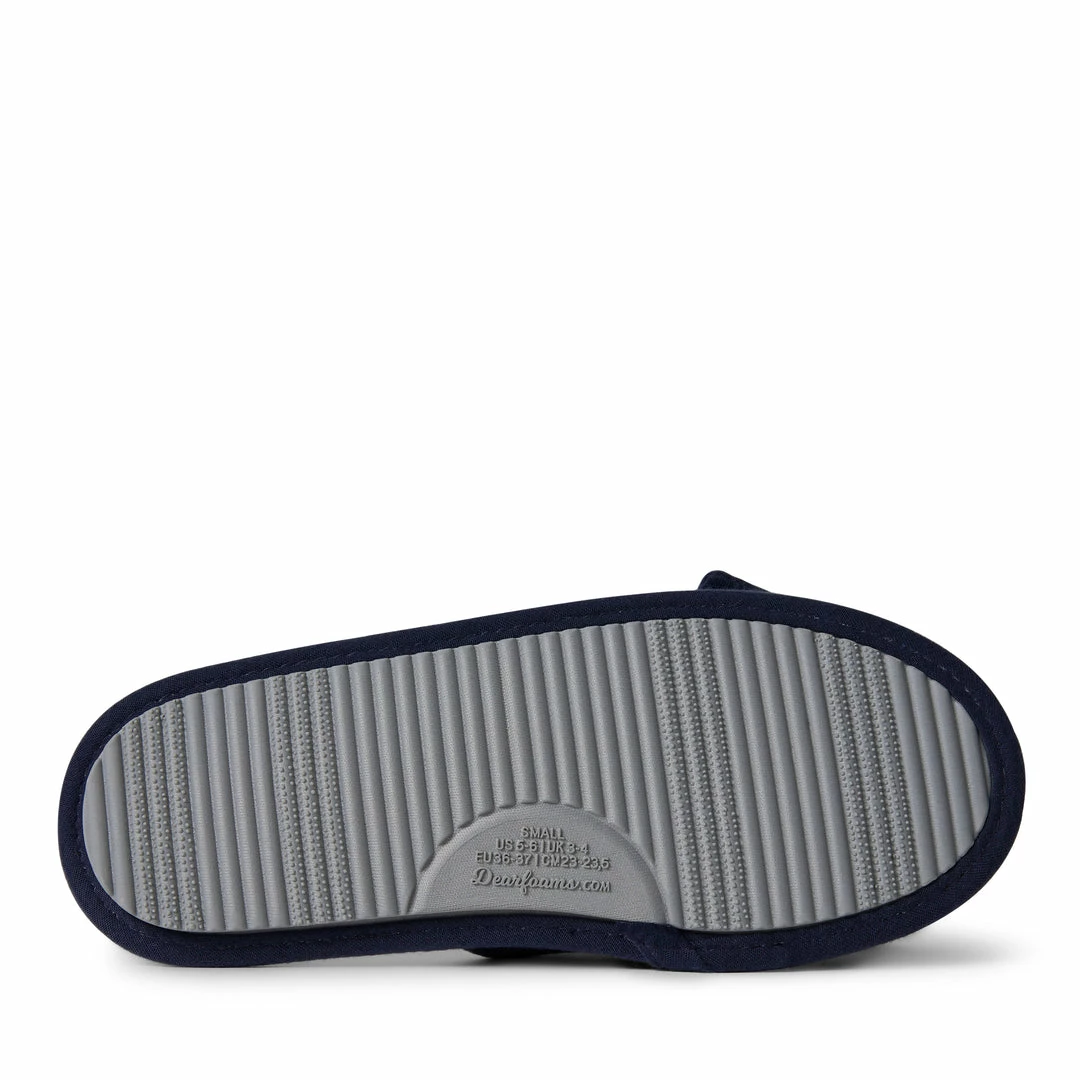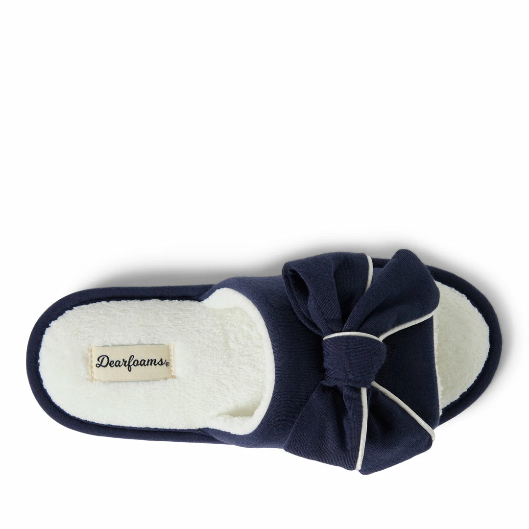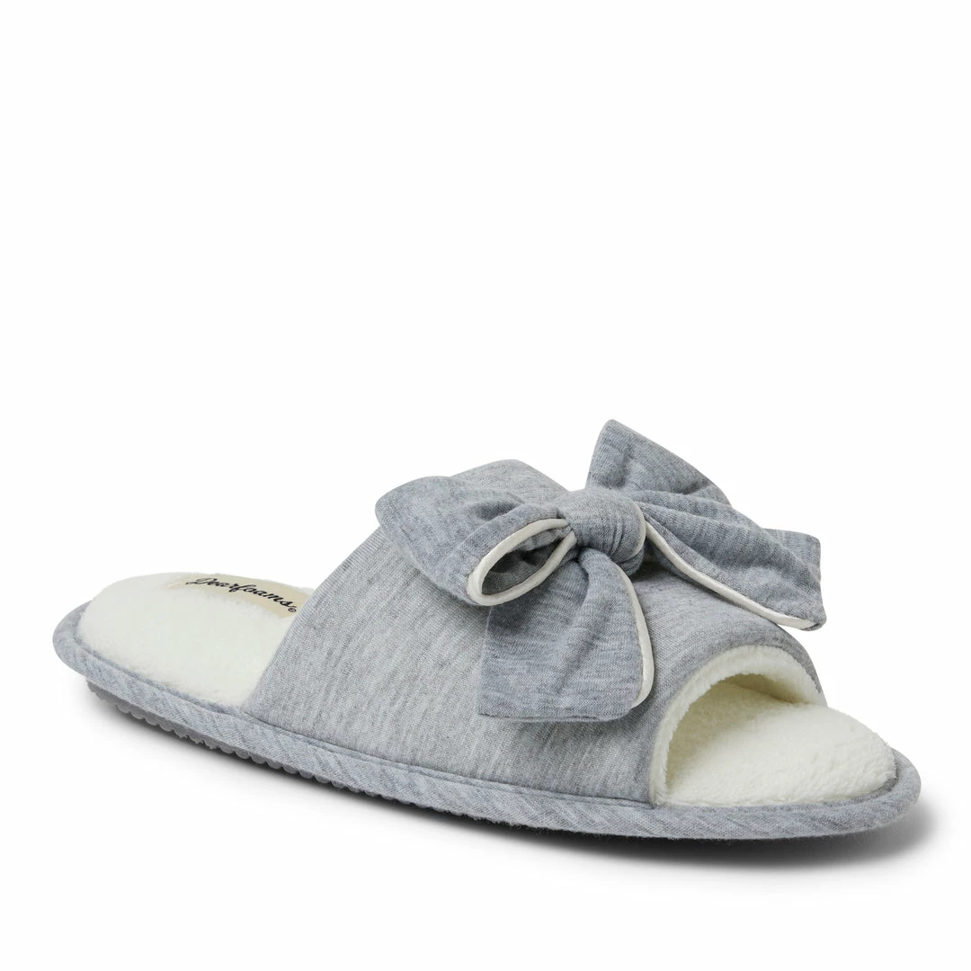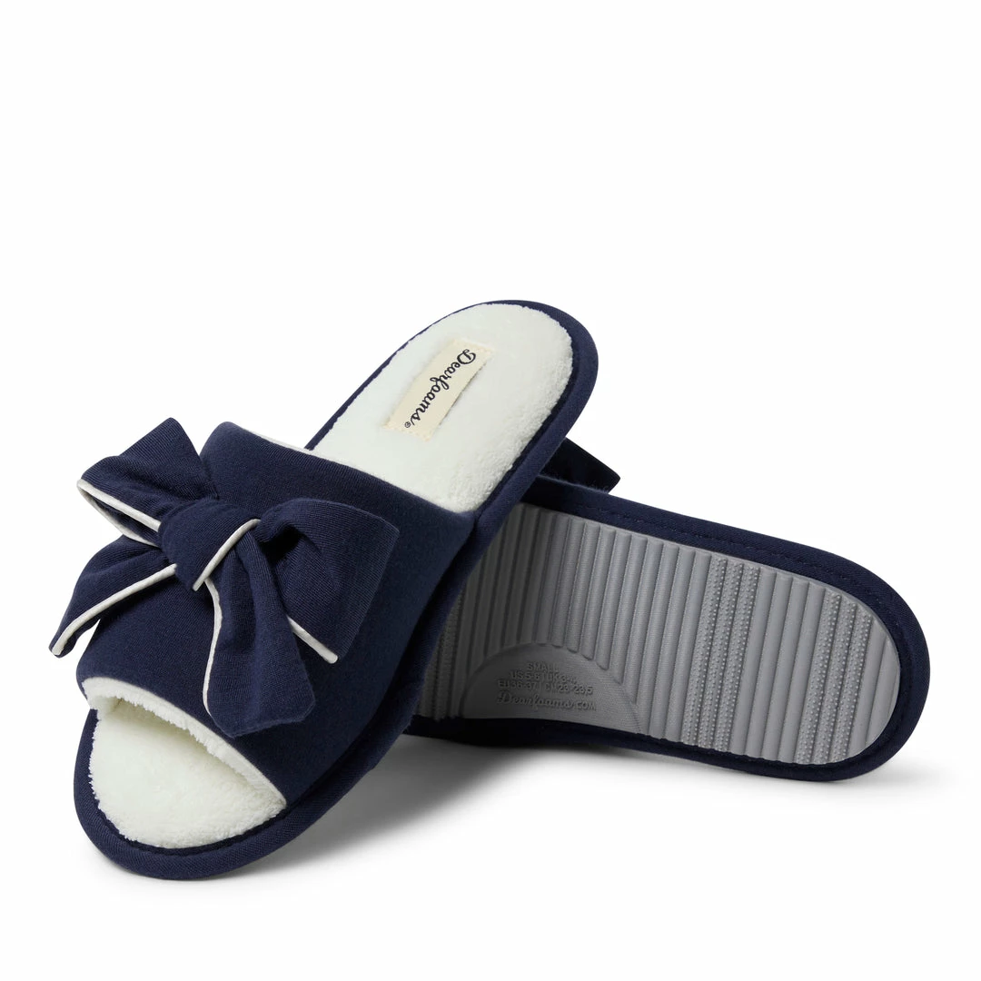 SLIDE-ON DESIGN – Dearfoams Womenβs Lydia Pajama Knit Slide with a bow are perfect to slide on when you are looking for some extra comfort for your well-deserving feet. These everyday slippers will be your new favorite.
