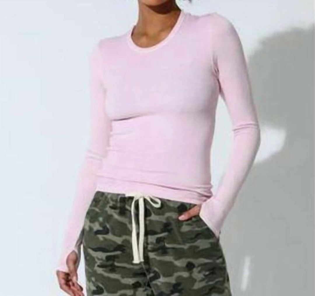 THE OLIVIA LONG SLEEVE TOP IS MADE FROM OUR STRETCHY RIB KNIT AND FEATURES OUR FAVORITE UNDETECTED THUMB HOLES. PAIR WITH ANY SWEATPANTS OR STYLE IT UP IN YOUR FAVORITE DENIM.